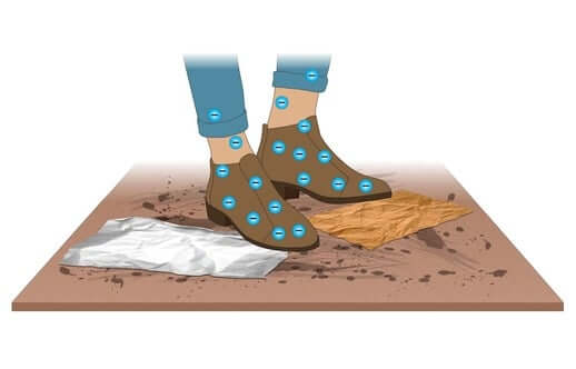 When people walk on a floor, the contact and separation – or friction – between the soles of their shoes and the floor generates static charges. As they walk, charges build on their body. Like all electrical charges, static seeks a path to ground. When a charged person touches someone or something, the charge jumps from them to the other person or object. This transfer of electrical current is called an electrostatic discharge (or ESD) – and it’s this discharge that harms electronic circuitry.
