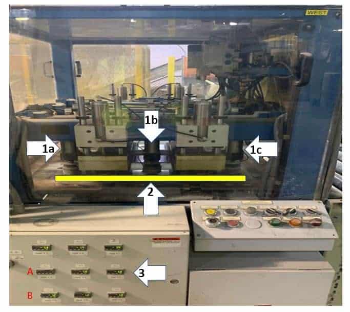 1) The tester has 9 probes. Three are visible in the photo: 1a, 1b, 1c.