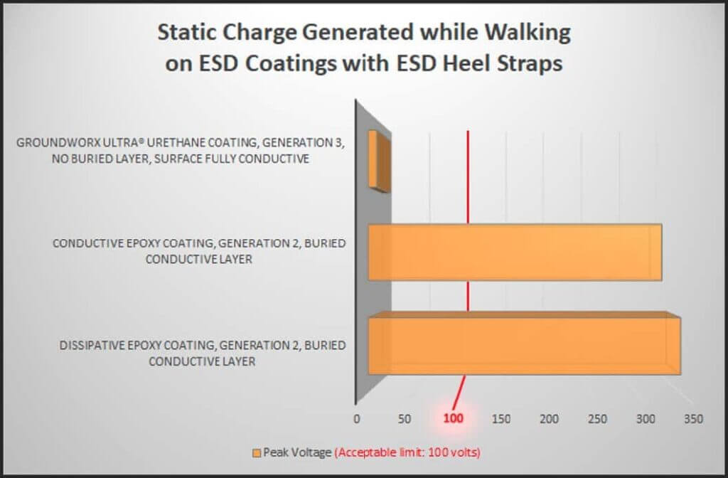 - GroundWorx Ultra allows for the use of any type of ESD footwear while still meeting the ANSI /ESD 20.20 requirements of less than 100 volts charge generation for a flooring/footwear combination.