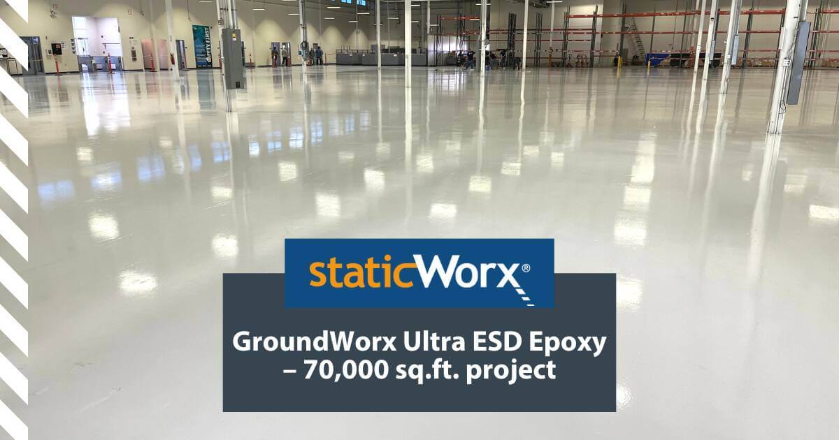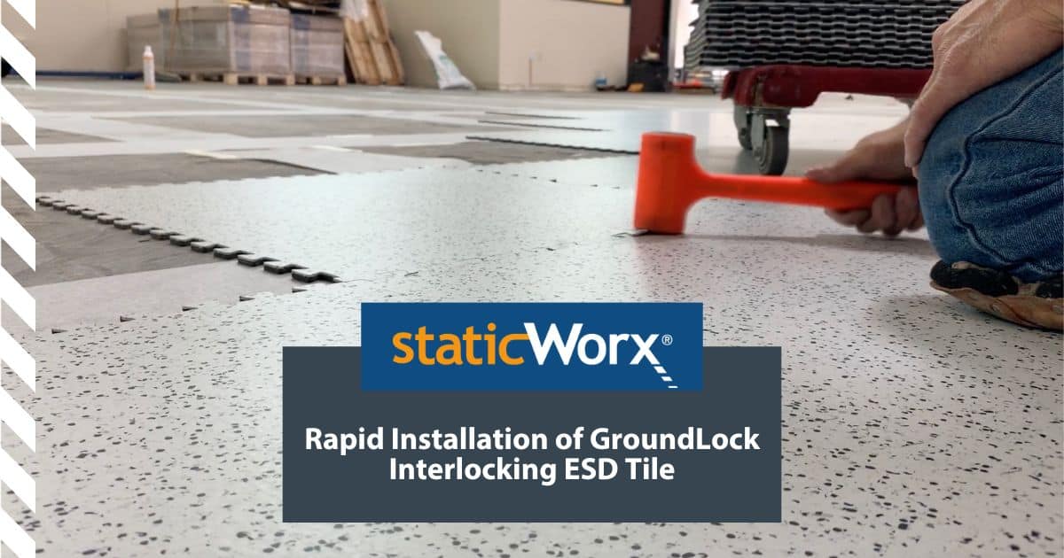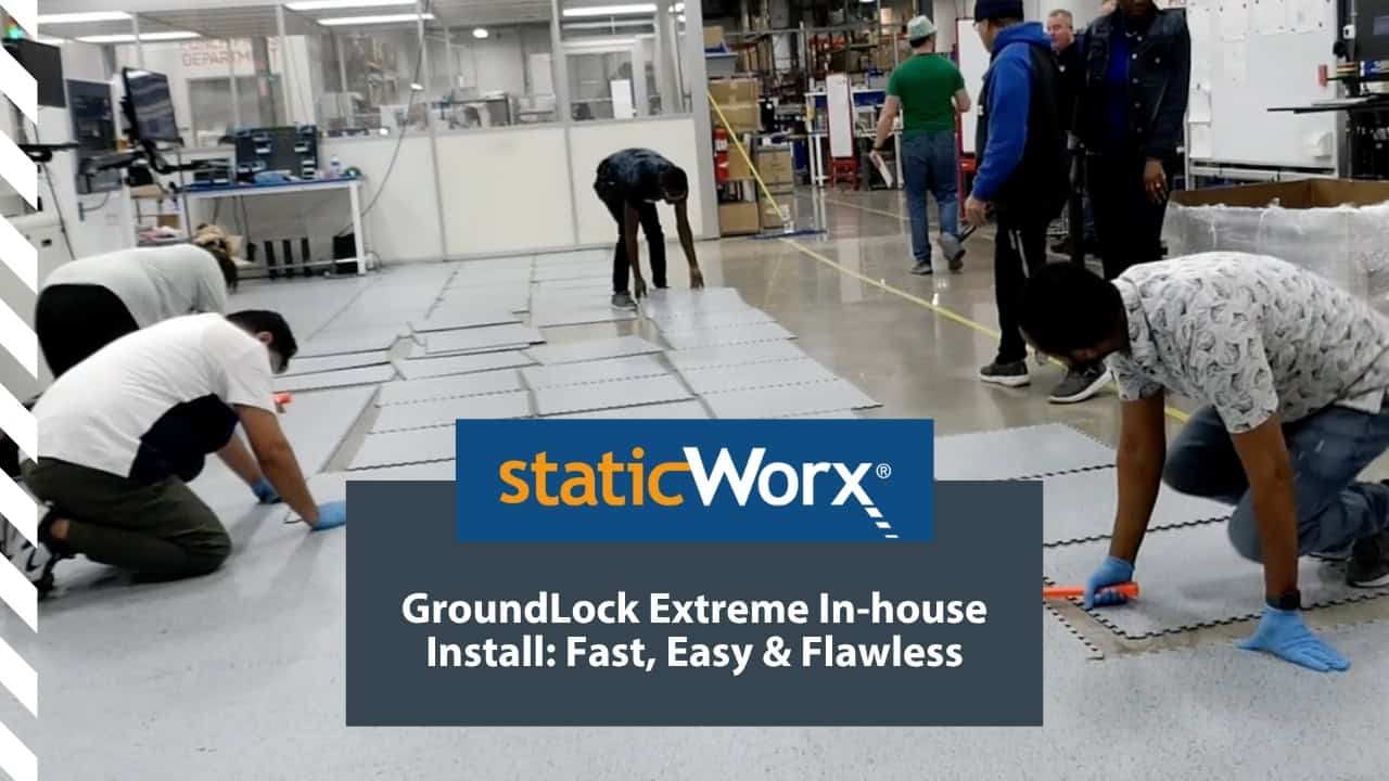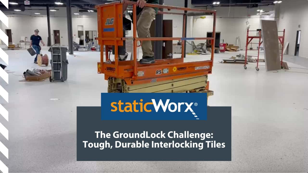 This GroundLock Extreme interlocking ESD tile flooring was installed by DFS Flooring, Los Angeles. The client had adhesion problems with the existing floor due to chemicals being left on the concrete during the building’s original construction. The problem was solved by installing a floating interlocking floor.