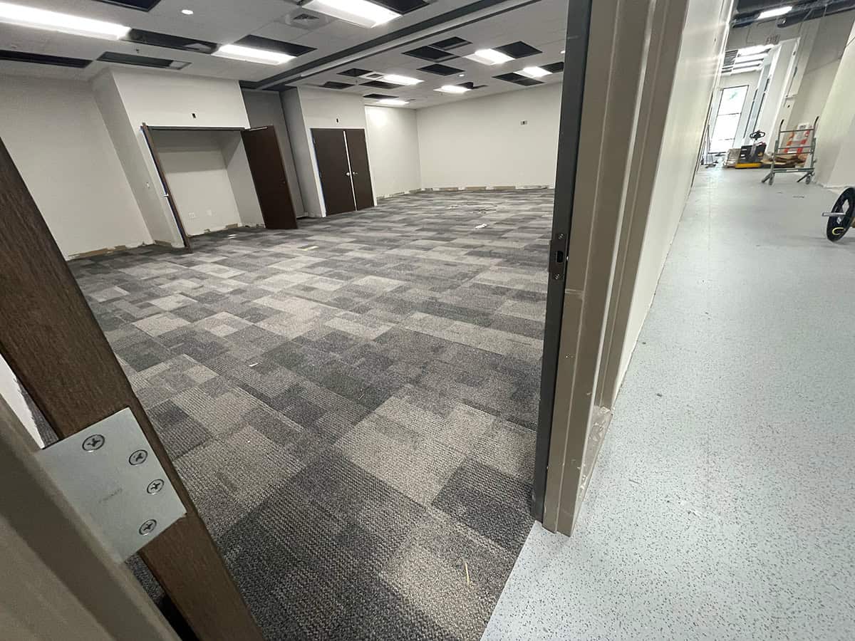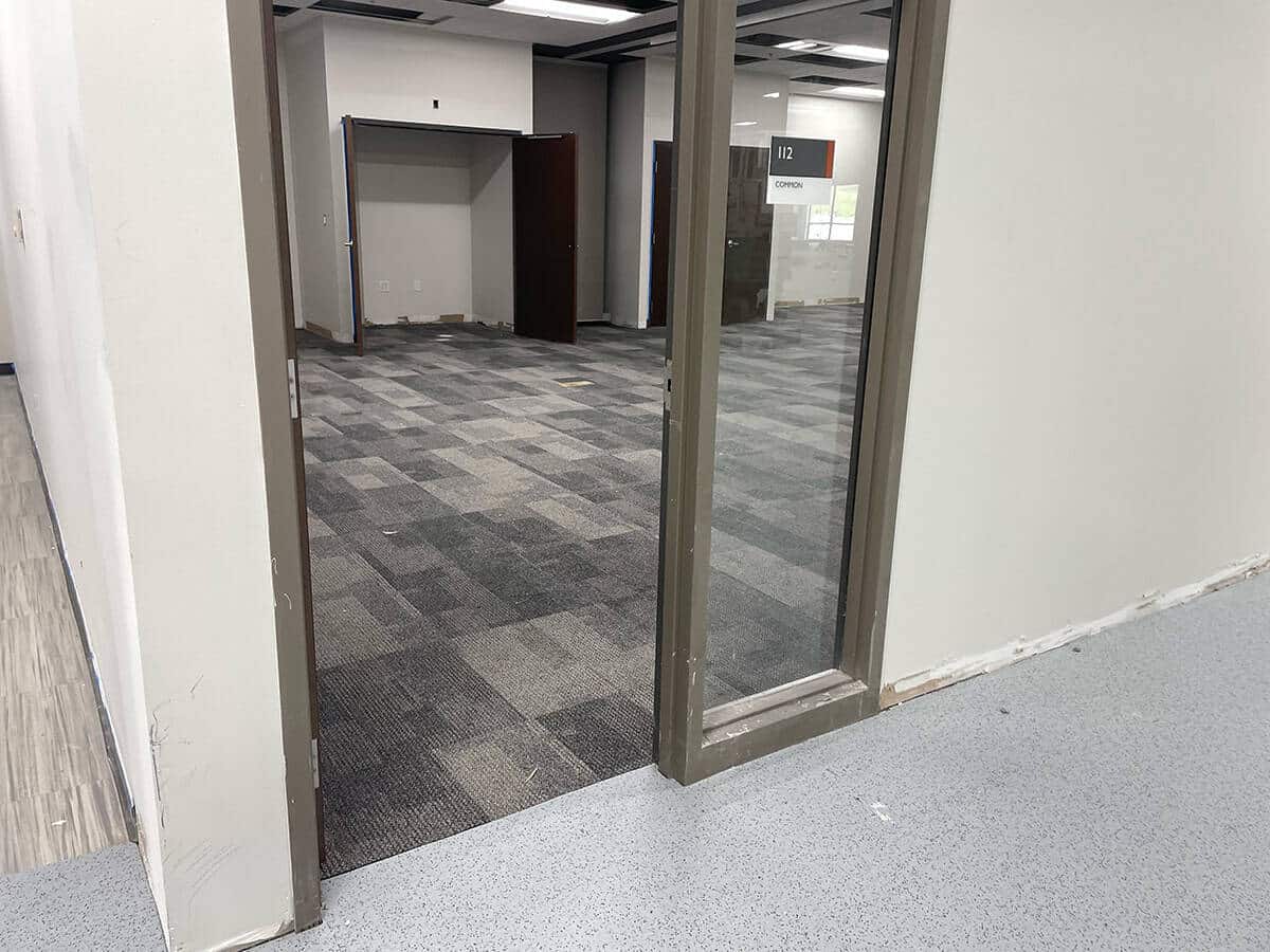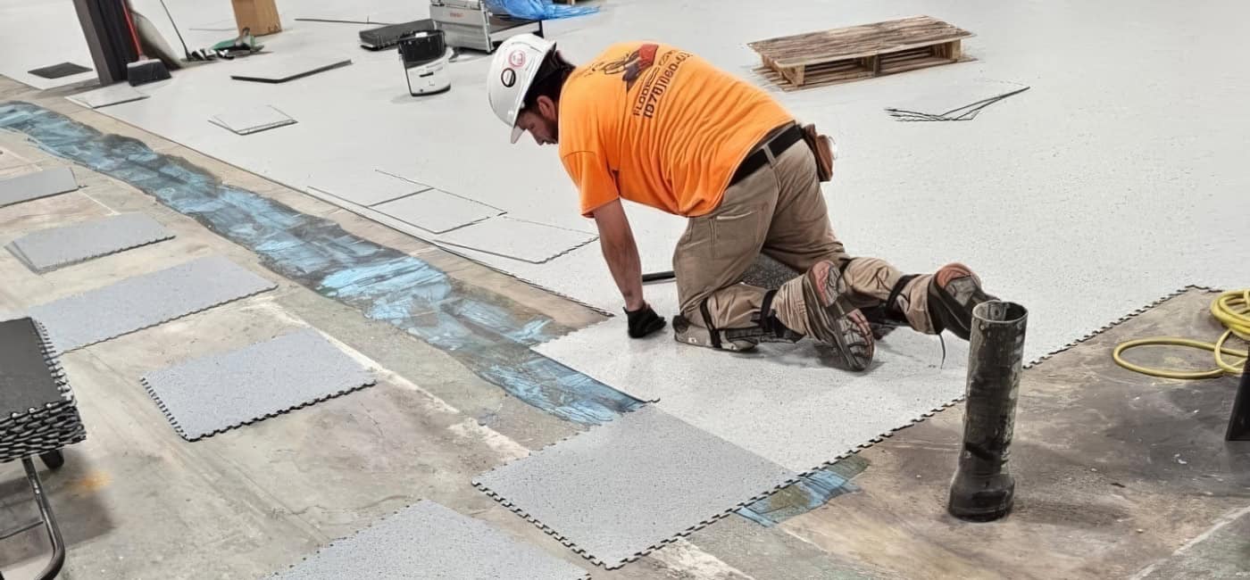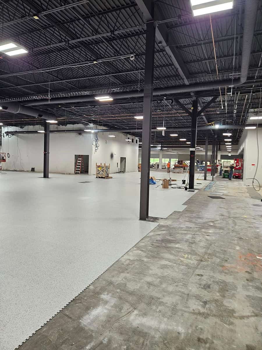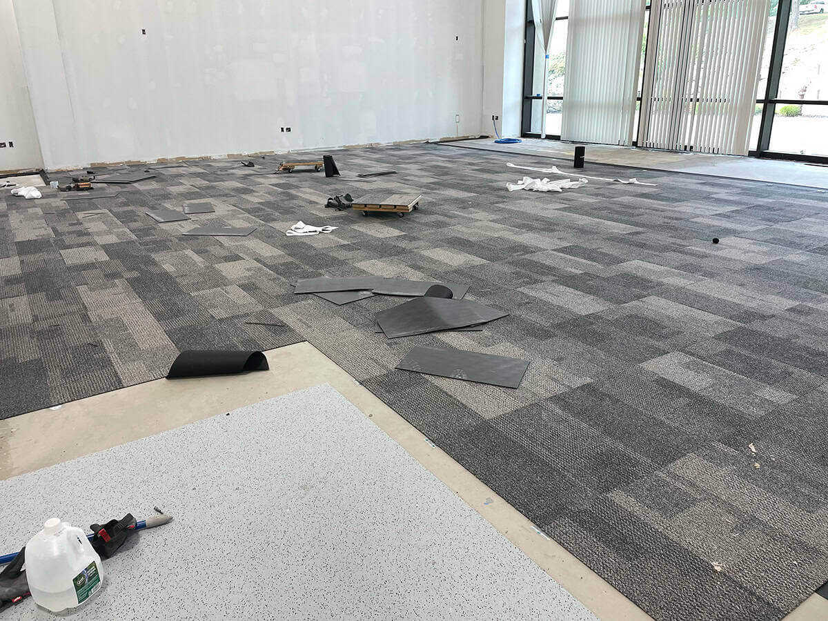 This was a challenging installation. EIT Zollner was relocating and the subfloor in the new building was in poor shape, with cracks, swales and moisture problems. Repair and floor prep would have been extremely costly. Using GroundLock interlocking tile, BG Floors was able to go directly over the old subfloor with minimal preparation. Along with saving money for the client, installing GroundLock directly over the subfloor helped to expedite the renovation schedule.