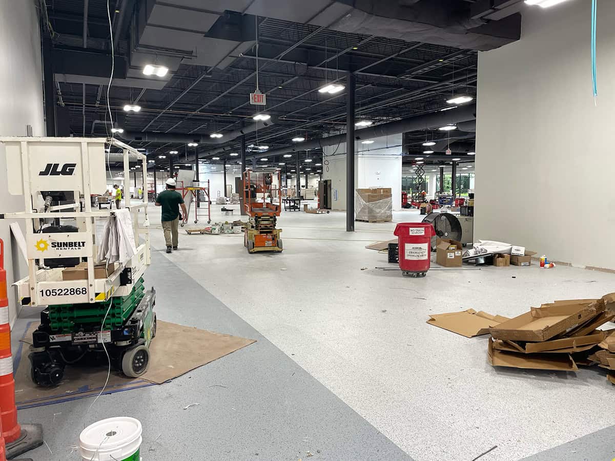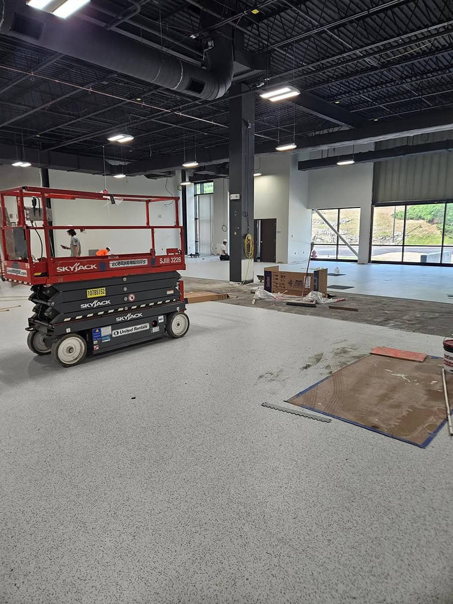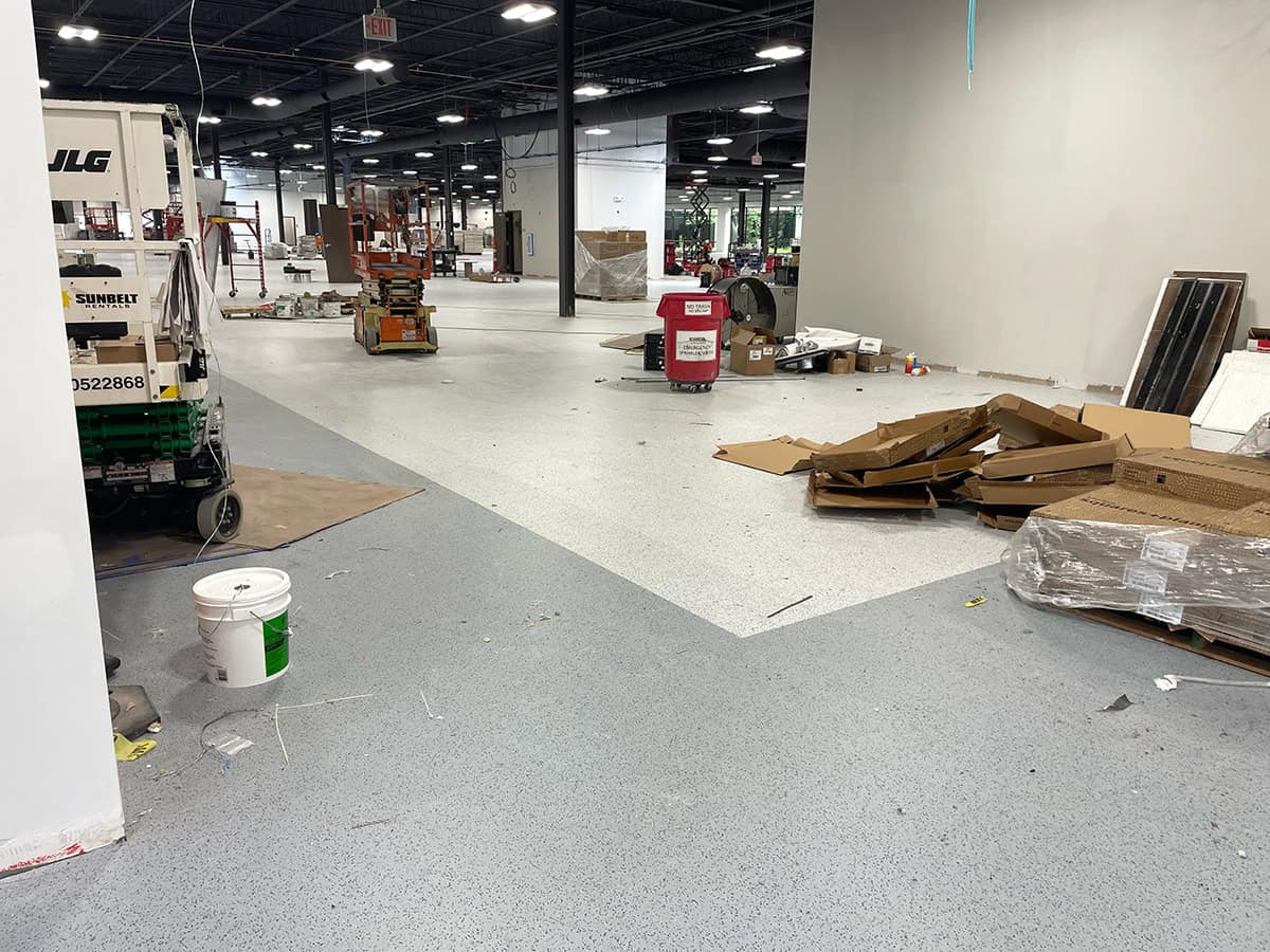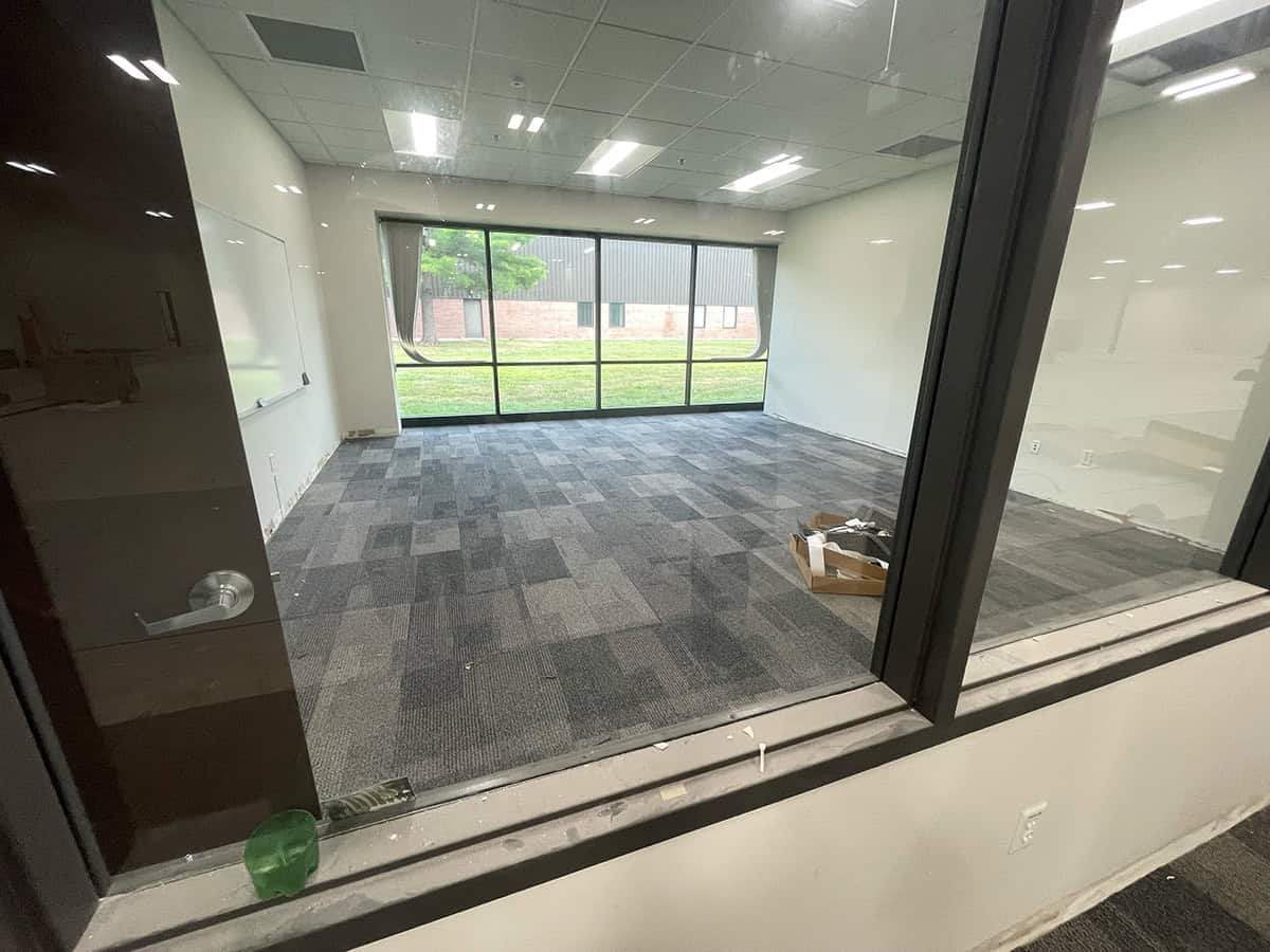 This was a challenging installation. EIT Zollner was relocating and the subfloor in the new building was in poor shape, with cracks, swales and moisture problems. Repair and floor prep would have been extremely costly. Using GroundLock interlocking tile, BG Floors was able to go directly over the old subfloor with minimal preparation. Along with saving money for the client, installing GroundLock directly over the subfloor helped to expedite the renovation schedule.