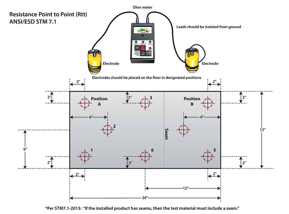Under the guidelines in ANSI/ESD S20.20, we use Standard Test Method 7.1 to test for electrical resistance.