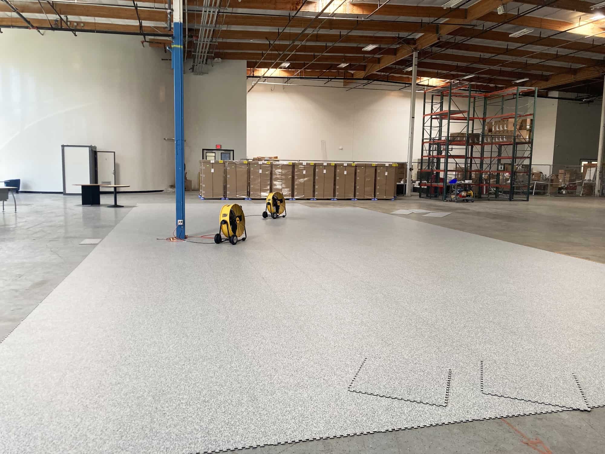 The company used their internal team to install GroundLock Extreme in a rented warehouse space with a concrete floor. The concrete acted as a subfloor, with interlocking tiles placed directly on top of the concrete.
