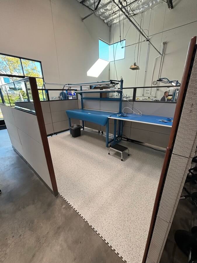 Synaptic Medical purchased GroundLock Extreme Interlocking tile for a warehouse space they were renting on a 3-year lease. They perform medical device assembly at benches within the space.