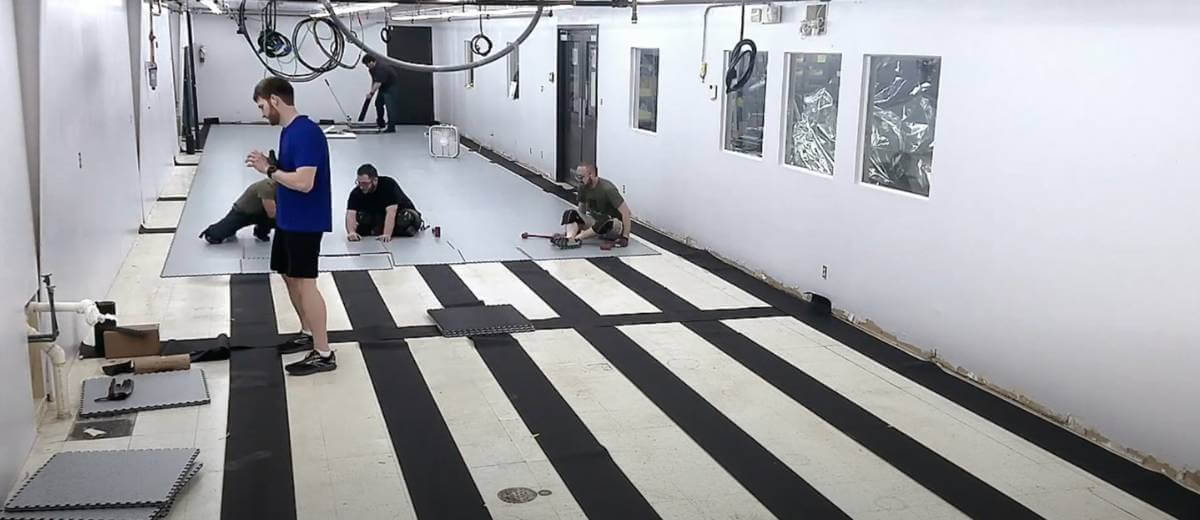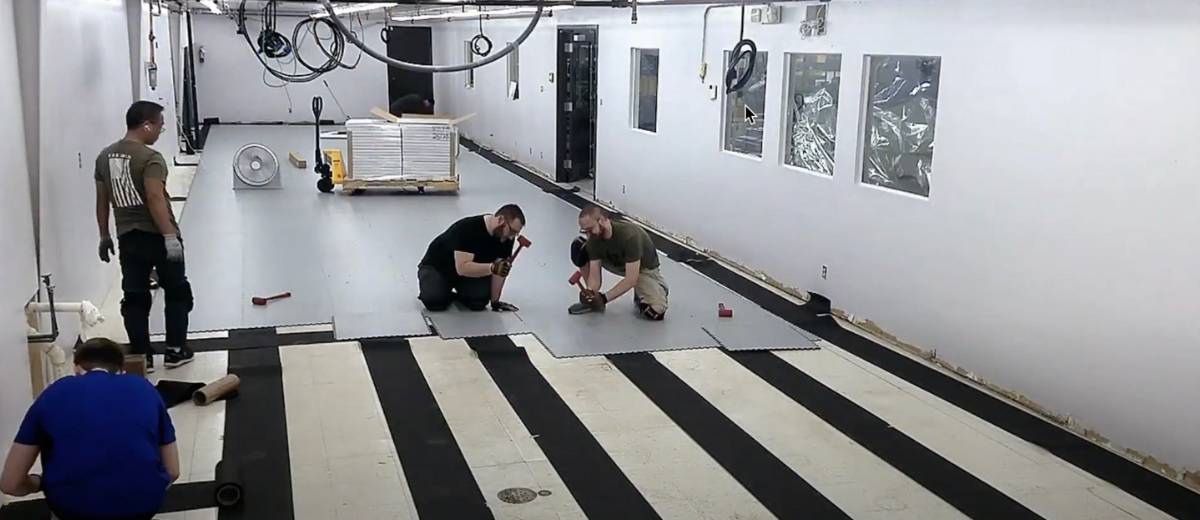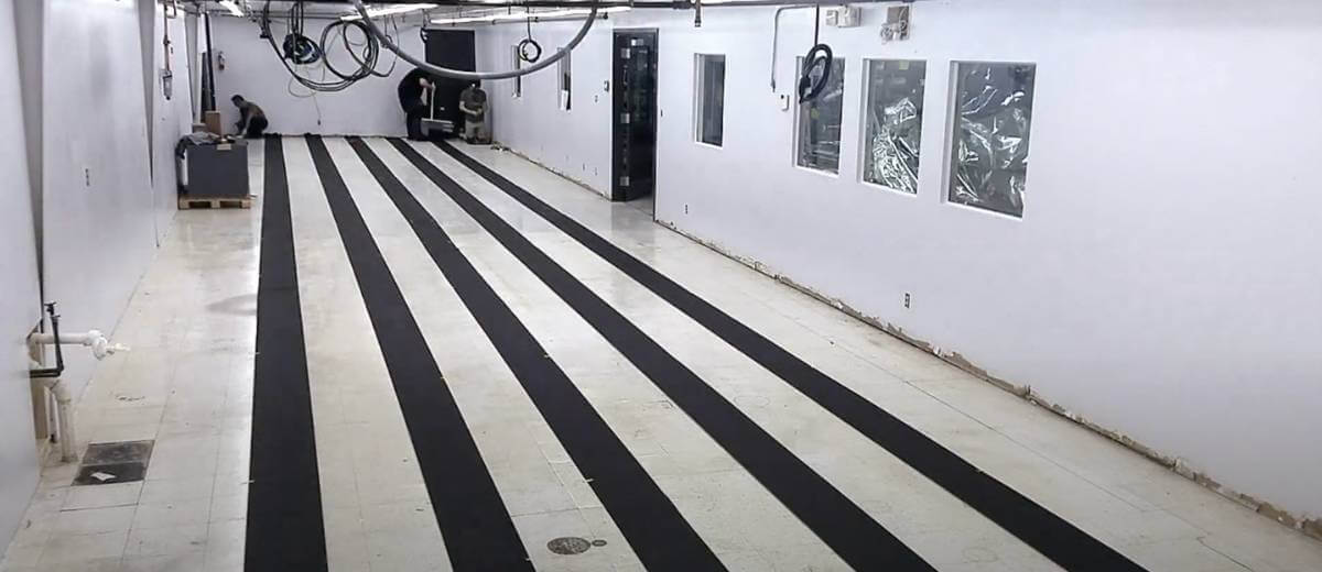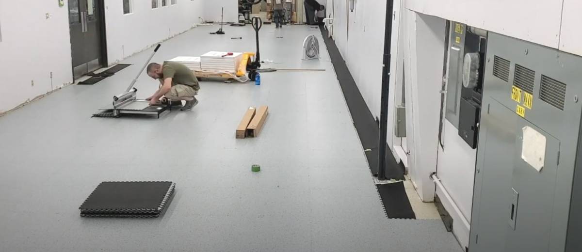 A 5-person team installed 1,600 sq. feet of GroundLock interlocking tile in 8 hours. (Note: the optional use of conductive GroundBridge provides equipotential grounding but is not necessary to meet ANSI/ESD S20.20.)