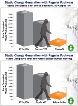 - In an ASHRAE study for data center applications Eclipse EC rubber flooring demonstrated the lowest charge generation properties of any ESD floor whether the tests were performed with or without static control footwear.