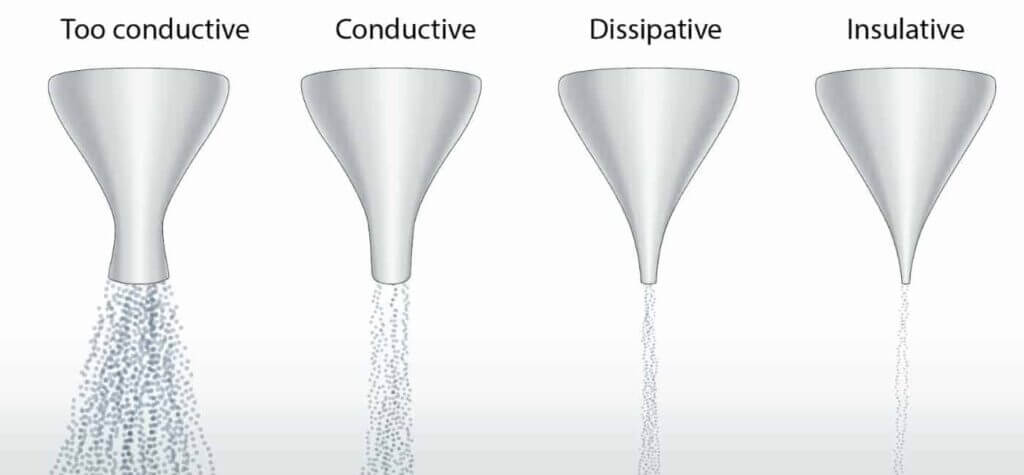 The lower the electrical resistance, the more rapidly a material can conduct an electrical charge. Because conductive materials offer a very low level of electrical resistance, they attract and decay electricity much more rapidly than static dissipative materials. A rapid decay of electricity can create a safety hazard if the grounded carpet is installed in spaces where people work near electrical appliances operating at 120, 220 and 440 volts.