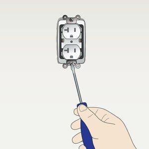 STEP 1: Remove the center screw on the cover of an AC electrical outlet using a screwdriver. Then, locate and remove the grounding screw inside of the outlet. This is most often found near the bottom of the receptacle.