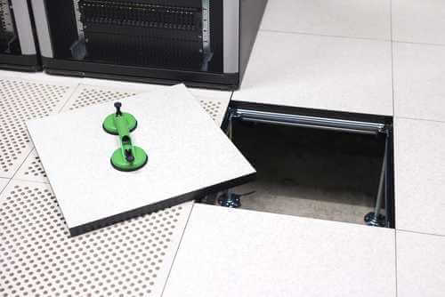 Raised floors can be grounded to the metal access floor panel or grounded like any other ESD floor with copper tape placed every 1000’ at the perimeter of the room and connected to an electrical outlet or other earth ground.