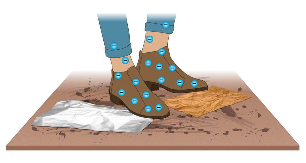 Without ESD footwear, ESD vinyl will generate static when people walk on its surface. ESD footwear creates a ground path between the person wearing the footwear and the ESD vinyl floor, preventing static generation as the person walks.
