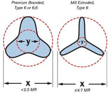 Modification ratio is calculated by comparing the outer circumference of the fiber to the circumference of the inner circle. The smaller the ratio, the more soil resistant the fiber will be and the better the carpet will wear. The larger the ratio, the more likely the fiber will trap and hold soil and the carpet might experience premature pile crush or matting.