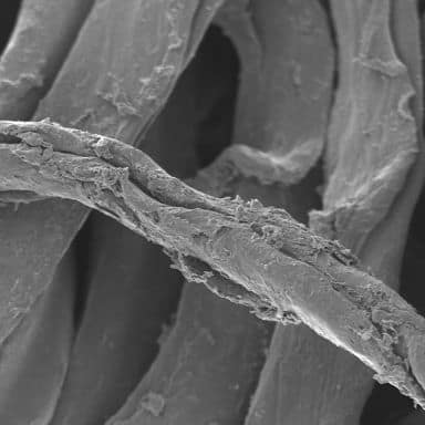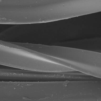 See the cross section of each fiber and the before and after images of the length of the fibers. Notice the abrasion and breakdown of the fiber in the competitive product.