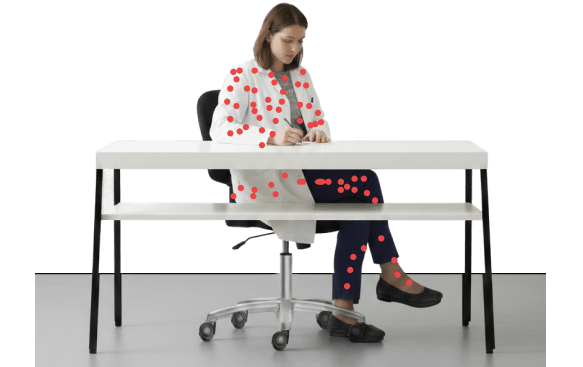 Permanent contact backrest follows your movements. Generous seating with integrated pelvic support and rounded front edge prevents circulation issues.